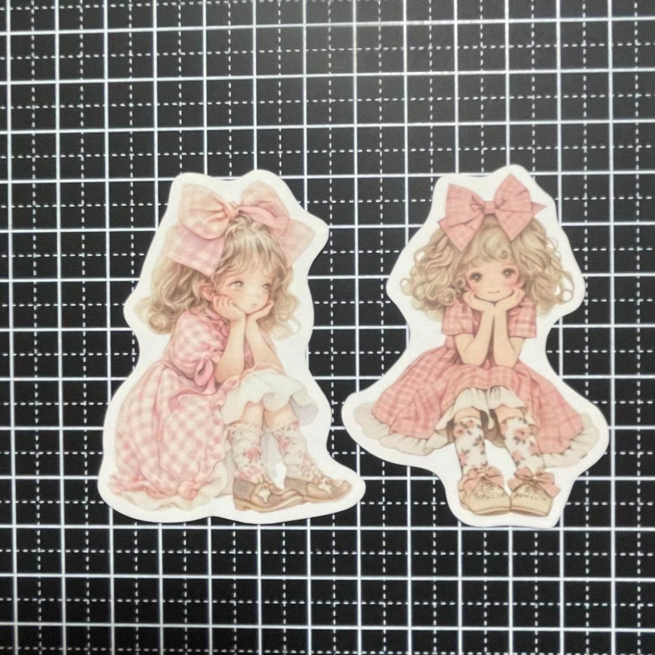 ピンクリボンのアンニュイガール コラージュ素材シール