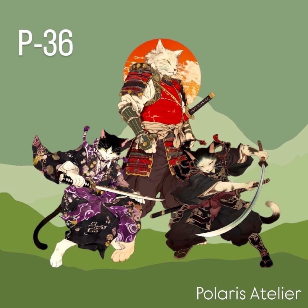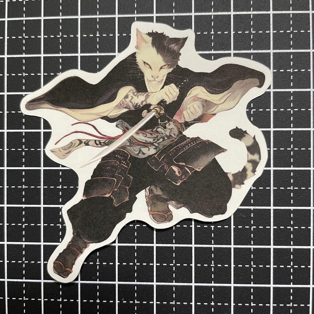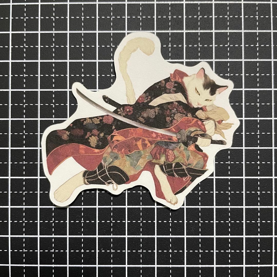 【P-36】コラージュ素材 ステッカー ねこ侍
